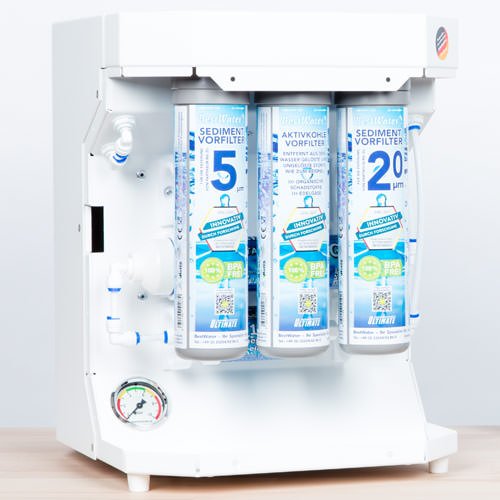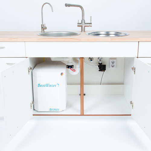 Инсталирането на новия филтър за вода с обратна осмоза от BestWater е по-лесно от всякога. Всички компоненти и предварителни филтри са предварително инсталирани и готови за употреба. Всичко, което трябва да направите, е да прикрепите линиите със системата за бързо освобождаване и водният филтър е готов за употреба. Всички връзки са надолу, което позволява системата да се монтира във всяка зона под мивката. В същото време новият ULTIMATE с размери (В x Ш x Д) 410 mm x 310 mm x 463 mm е с цели 16 литра по-малък от предишния модел и може да се побере под мивката дори в най-малката кухня.