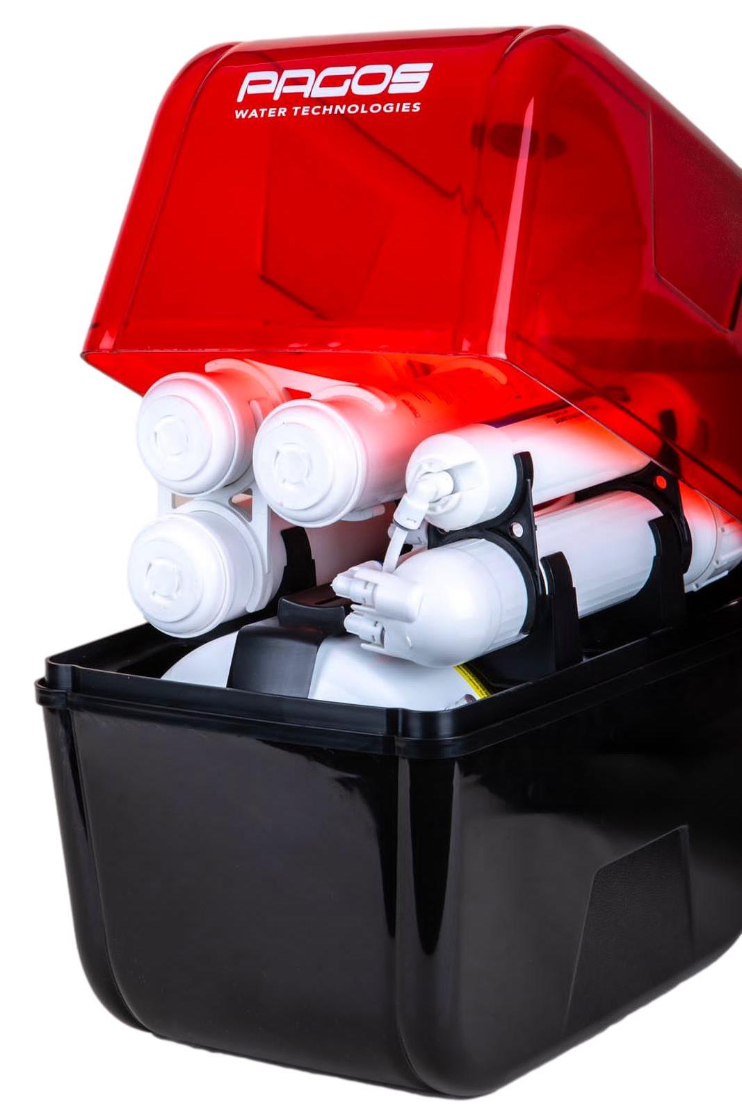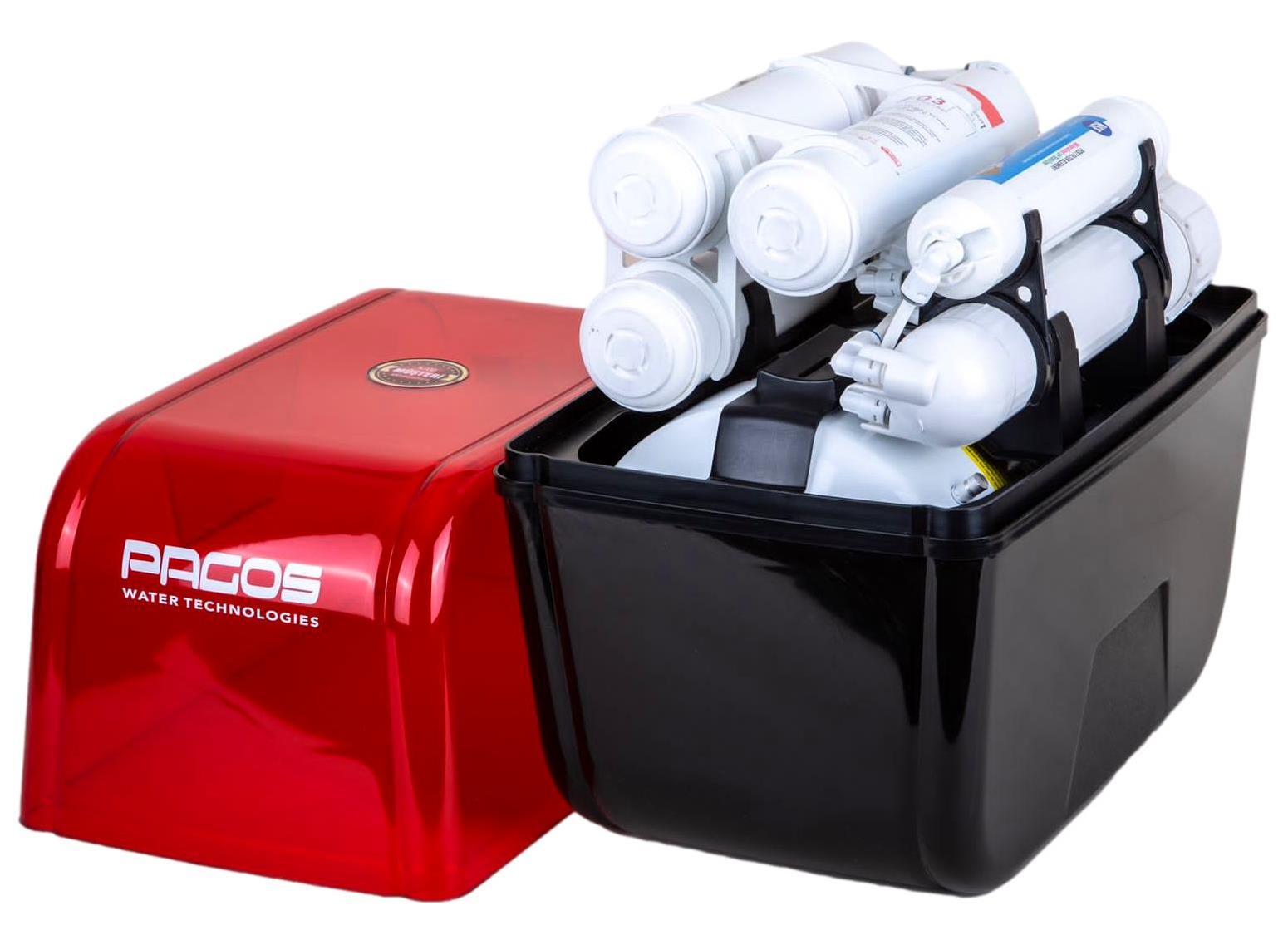 Чиста, мека, неутрална и ниско минерализирана вода от компактна система за монтаж под мивката. Пет степенна филтрация за най-вкусната вода за пиене директно на мивката в кухнята. С помощта на Pagos Вие имате идеално омекотена и чиста вода. В системата е включена кран за чиста вода, която се монтира на мивката или плота, както и разклонител за присъединяване към външни консуматори.